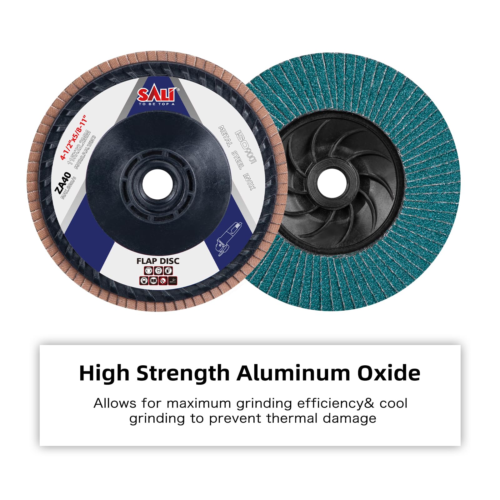 Sali 10 Pack Zirconia Flap Disc 40 Grit 4.5" x 5/8-11 Sanding Disc Bevel Type #27 Premium and Industrial Grade Angle Grinder Grinding Wheel Finishing for Stainless Steel, Sheet Metal